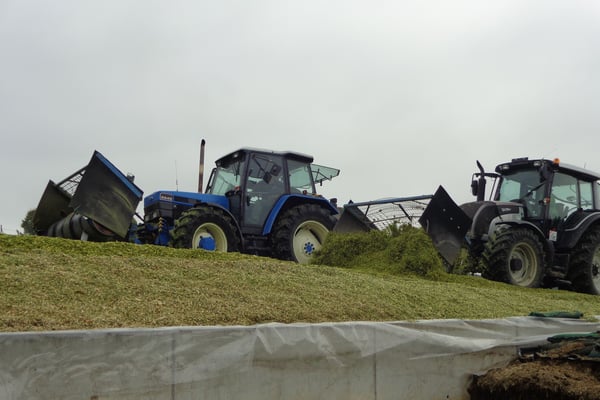 Um mit der enormen Leistung der Feldhäcksler auch im Fahrsilofüllen mithalten zu können, stehen uns zwei Walztrakroren zur Verfügung.