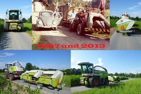 Dank des Kaufes eines occ. GPS-Schneidewerks ereignet sich 2013 ein Déjà-vu. Bereits im Jahr 1967 wurde die Häckselflotte verladen, und nach Basel geführt, um befreundeten Lohnunternehmern und Bauern bei der Maisernte zu helfen. 46 Jahre später, sind wir wieder mit einem top modernen Claas 850 Speed Star Selbstfahrfeldhäcksler samt Claas Direct-Disc 520 GPS-Schneidewerk im Raum Leibstadt und Jonen unterwegs. Das Ziel ist nicht der Mais, sondern die Felder, die sich für die GPS-Ernte eignen, wie z.B. Hafer-, Weizen-. Triticalfelder oder OH71-Mischungen.