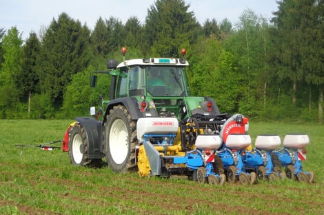 Im Frühling 2014 ist die 4-reihige Monosem Maissämaschine mit Mikrogranulatdüngerkästen nachgerüstet worden, um bei der kombinierten Saat Mikrogranulatdünger einsetzen zu können.